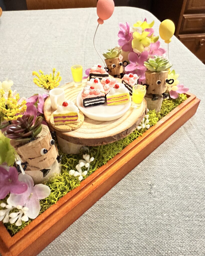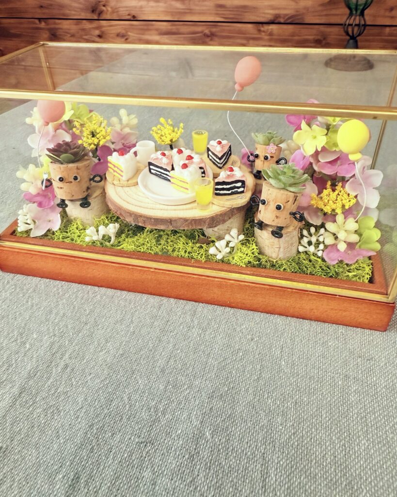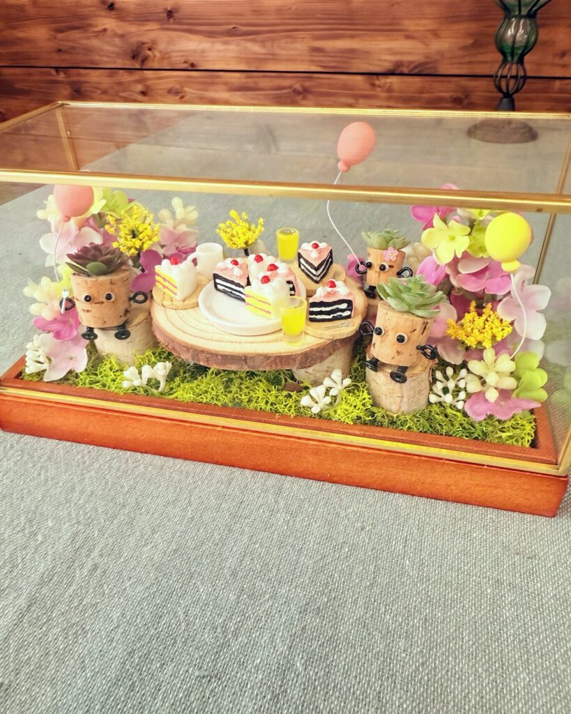 家族みんなでテーブルを囲み、おやつタイムを楽しんでいる様子をイメージしました。